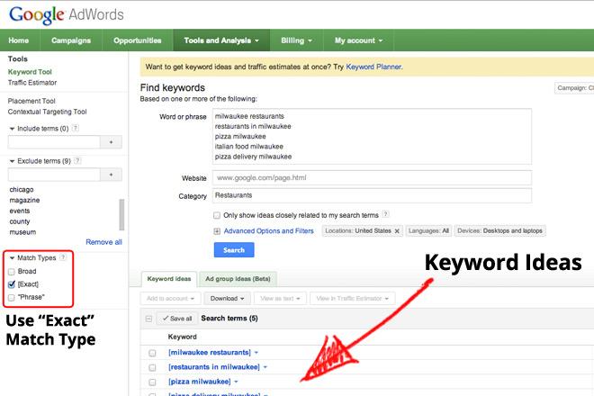 A Ferramenta de palavras-chave do Google Adwords foi projetada para ajudar as pessoas a comprar anúncios para palavras-chave e mostrará o número de vezes que uma palavra-chave é pesquisada para cada mês com a competição geral da palavra-chave. As palavras-chave da concorrência mais alta são mais dispendiosas para os resultados pagos e, em geral, mais difíceis de classificar nos resultados orgânicos também. Os números de pesquisa não são completamente precisos, mas podem ajudá-lo a determinar quais palavras-chave têm mais oportunidades em sua região.